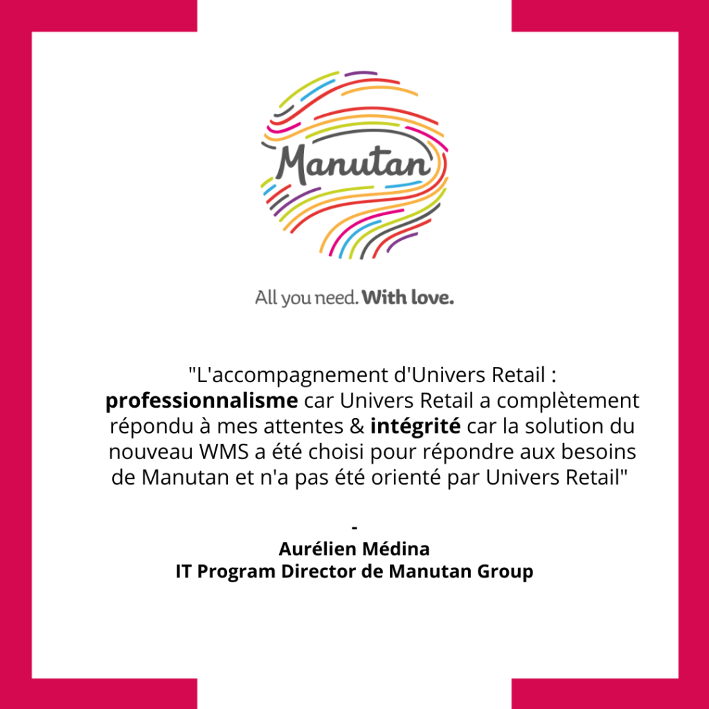 Ainsi, dans un contexte d’harmonisation et de transformation des processus de la Supply Chain, Manutan a souhaité se faire accompagner pour la sélection de son outil de gestion d’entrepôt (WMS) pour tous les entrepôts du groupe. Aurélien Médina, IT Program Director, nous explique pourquoi il a choisi Univers Retail pour ce projet et quels ont été les bénéfices et résultats à la suite de notre intervention.